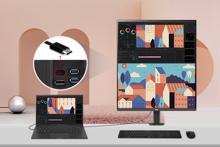 จอมอนิเตอร์ที่อำนวยความสะดวกให้การทำงานของครีเอเตอร์ต้องเป็นจอที่รองรับการเชื่อมต่อที่หลากหลาย โดยควรรองรับช่องต่อ HDMI อย่างน้อย 2 ช่อง DisplayPort 1 ช่อง และ USB Type-C™ 1 ช่อง นอกจากนี้ ควรพิจารณาความสามารถในการถ่ายโอนข้อมูลได้อย่างรวดเร็ว และการชาร์จไฟกับแล็ปท็อปได้ทั้ง Windows และ MacBook เพื่อความราบรื่นในการเชื่อมต่อกับอุปกรณ์ทุกประเภท