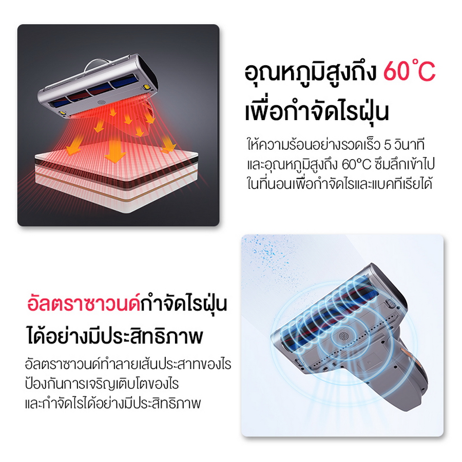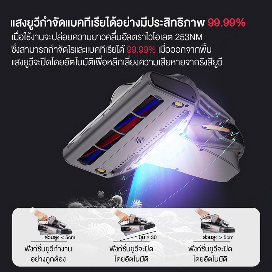 นอกจากเรื่องพลังในการดูดที่มีประสิทธิภาพแล้ว JIMMY BX7 Pro ยังผสานการฆ่าเชื้อด้วยรังสีอัลตร้าไวโอเล็ต, พลังอัลตราโซนิคเพื่อช่วยกำจัดไรฝุ่นและฟังก์ชันเป่าลมร้อน 60 องศาเซลเซียส พร้อมโหมดการทำงานถึง 3 โหมด ทำให้สามารถกำจัดไรฝุ่น/แบคทีเรียที่ฝังลึกในเตียงและโซฟาได้อย่างมีประสิทธิภาพ และคงระยะยาวนาน