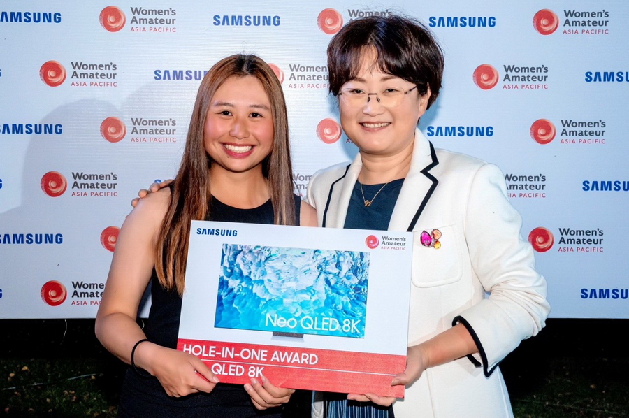 ซึ่งทั้งสองรางวัล ได้รับเกียรติจาก เจนนิเฟอร์ ซง ประธานธุรกิจเครื่องใช้ไฟฟ้า บริษัท ไทยซัมซุง อิเลคโทรนิคส์ จำกัด เป็นผู้มอบรางวัล เพื่อให้นักกอล์ฟหญิงทั้งสองท่านได้รับประสบการณ์กับผลิตภัณฑ์ซัมซุง