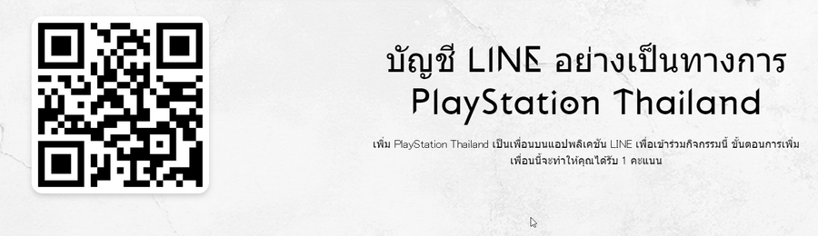 - 1 คะแนน - LINE Official PlayStation Thailand - เพิ่ม PlayStation Thailand เป็นเพื่อน เพื่อเข้าร่วมกิจกรรม ผ่านทางลิงค์ https://lin.ee/MXN6Lia หรือ QR Code ด้านล่าง
