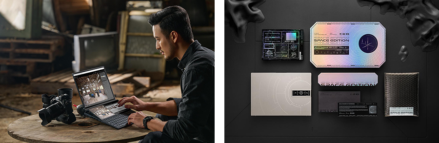 นอกจากนี้ยังมี ASUS Zenbook 14X OLED Space Edition (UX5401ZAS) โน้ตบุ๊กขนาด 14" ได้รับการออกแบบด้วยแรงบันดาลใจจากสถานีอวกาศ สำหรับคนที่มองหาโน้ตบุ๊กประสิทธิภาพสูง พร้อมดีไซน์เก๋ด้วยลายเส้นบนฝาเครื่องเป็นสัญลักษณ์ของแคปซูลอวกาศ ตัวเครื่องทนทานในระดับ Space Grade มาพร้อมหน้าจอสัมผัส 4K OLED อัตราส่วน 16:10 ให้พื้นที่การทำงานในแนวตั้งที่เพิ่มขึ้น มาพร้อม ZenVision Display จอหลังอัจฉริยะขนาด 3.5" OLED บริเวณฝาเครื่อง สามารถปรับแต่งได้ตามชอบ ใช้งานได้อย่างหนักหน่วงไม่สะดุดด้วยโปรเซสเซอร์สูงสุด Intel® Core™ i9-12900H Processor 2.5 GHz ตัวเครื่องบางเบา เพียง 15.9 mm หนัก 1.4 KG พกพาสะดวก คล่องตัวสูง พิเศษ! ราคาเริ่มต้น 49,990 บาท จากราคาปกติ 53,990 บาท