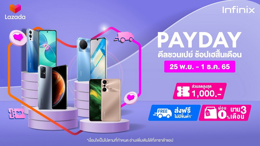 2. เมื่อซื้อสินค้าบน LAZADA ระหว่างวันที่ 25 พฤศจิกายน – 1 ธันวาคม 2565 รับส่วนลดสูงสุด 1,000 บาท พร้อมบริการจัดส่งฟรี และรับข้อเสนอสุดพิเศษ ผ่อน 0% นาน 3 เดือน อาทิ