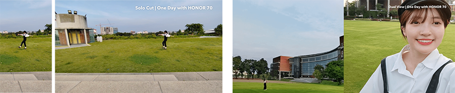 "เริ่ม Vlog ที่แรกกับคาเฟ่สไตล์มินิมอลใกล้บ้าน เปลี่ยนบรรยากาศเพิ่ม Productivity ในการทำงาน แต่ก็ไม่ลืมถ่ายรูปและวิดีโอตามสไตล์ Café Hopping ตัวยง ใช้โหมด Macro ให้เห็นชัดๆ กันไปเลยว่าเค้กกับโกโก้ที่สั่งมาน่าทานขนาดไหน หลังจากนั้นก็ไปปิกนิกกันต่อที่อุทยานการเรียนรู้ป๋วย 100 ปี ได้อัดวิดีโอแบบ Dual View ถ่ายดงดอกไม้ด้วยกล้องหลัง ส่วนกล้องหน้าถ่ายเธอถือช่อดอกไม้ไปพร้อมกัน เดทกับตัวเองครั้งนี้ไม่เหงาเท่าไร เพราะได้เล่นเป่าฟองสบู่กับน้องหมามีความสุขและเพลินจนลืมเวลา ดีที่ได้ถ่ายโมเมนต์แห่งความสุขนี้กลับมาเก็บไว้ดูด้วย ทั้งแบบ Slow Motion เห็นชัดทุกการเคลื่อนไหว และใช้โหมด Solo Cut จับโฟกัสตามติดบุคคลและวัตถุที่ถ่าย กดถ่ายเพียงครั้งเดียว ได้ทั้งไฟล์วิดีโอแนวตั้ง และแนวนอน เอามาใช้ได้ทั้งในคลิป หรือจะเอาไปลงโซเชียลก็เหมาะ พอพระอาทิตย์ใกล้ตก บรรยากาศเป็นใจให้ไถสเก็ตบอร์ดรับลมเย็น และก็ไม่พลาดที่จะถ่ายคลิปโชว์ลีลา พร้อมถ่ายท้องฟ้าสีสวยไปพร้อมกันด้วยโหมด Dual View ปิดท้ายวันด้วยการเข้าซูเปอร์มาร์เก็ตถ่าย Vlog ซื้อของเข้าบ้านสักหน่อย ถึงแม้จะออกจากบ้านมาทั้งวันแล้ว แต่ถ่าย Vlog ด้วยกล้องหน้าของ HONOR 70 หน้าของเธอก็ยังคงสดใสเป็นธรรมชาติ ปังสุด!" Vlog 1 วันธรรมดาที่น่าจดจำและโรแมนติกยิ่งขึ้นของ Juny JomKan