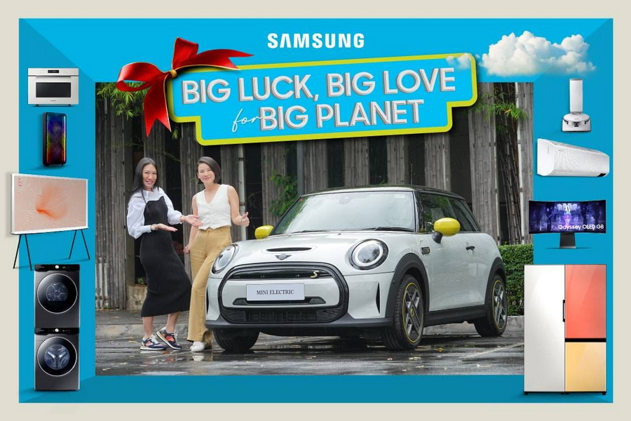 Samsung เตรียมยกทัพสมนาคุณครั้งยิ่งใหญ่ ให้สมกับความเป็นแบรนด์อันดับหนึ่งที่ครองใจผู้บริโภคคนไทยมายาวนาน ครั้งนี้ ซัมซุง โดย นางสาวปารมี ทองเจริญ ผู้อำนวยการฝ่ายการตลาดองค์กร บริษัท ไทยซัมซุง อิเลคโทรนิคส์ จำกัด ได้ร่วมกับรถยนต์ MINI โดย นางสาวประภัสรา อร่ามวงศ์สมุทร ผู้อำนวยการ บริษัท มินิ ประเทศไทย จำกัด จับมือกันครั้งแรกเพื่อมอบแคมเปญ “Big Luck, Big Love for Big Planet” ให้เป็นของขวัญแห่งปีจากสองแบรนด์ดังระดับโลก ผู้นำแห่งนวัตกรรมสู่อนาคตที่ยั่งยืน เอาใจนักช้อปส่งท้ายปีเก่าต้อนรับปีใหม่ ได้ลุ้นรับสิทธิ์ BIG LUCK เป็นเจ้าของ MINI Electric สัมผัสเทคโนโลยี Eco Friendly เป็นมิตรต่อสิ่งแวดล้อม ขับเคลื่อนด้วยพลังงานไฟฟ้าแบบ100% มูลค่า 2,459,000 บาท 1 รางวัล เพียงช็อปเครื่องใช้ไฟฟ้า ของซัมซุง ครบทุก 10,000 บาท ก็ได้สิทธิ์ลุ้นรับรางวัลใหญ่ส่งท้ายปีกันไปเลยสามารถร่วมกิจกรรมได้ง่ายๆ เพียงซื้อสินค้าซัมซุงที่ร่วมรายการ ครบทุก 10,000 บาท ถ่ายรูปใบเสร็จ หรือ ใบกำกับภาษี ที่มีรายการซื้อสินค้าซัมซุง และทำการอัปโหลดเพื่อรับสิทธิ์ลุ้นรางวัล 1 สิทธิ์