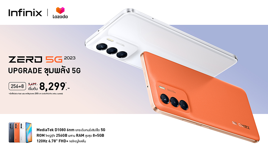 อินฟินิกซ์ (Infinix) แบรนด์สมาร์ตโฟนระดับโลกที่ได้รับความนิยมเป็นอย่างมากทั้งในต่างประเทศและประเทศไทย ล่าสุดเปิดตัวสมาร์ตโฟนระดับพรีเมียม Infinix ZERO 5G 2023 มาพร้อมกับสโลแกน "Power Upgrade – Upgrade ขุมพลัง 5G" เหนือระดับด้วยชิปเซ็ตเกมมิ่ง 5G จัดเต็มครอบคลุมทุกการใช้งาน พร้อมยกระดับประสิทธิภาพการใช้งานด้วยชิปเซ็ตทรงพลังจาก MediaTek Dimensity 1080 ขนาด 6 นาโนเมตร ผสานกับการใช้งานที่ไร้ขีดจำกัดด้วยหน่วยพื้นที่ความจำตัวเครื่อง 256GB และ Ram 8 + 5GB รวมถึงดีไซน์ที่โดดเด่นเป็นเอกลักษณ์ เน้นความเรียบหรู ทันสมัย เหมาะกับทุกไลฟ์สไตล์ เปิดตัวในราคา 9,499 บาท กำหนดวางจำหน่ายแบบ Online Exclusive ที่ร้าน Infinix Official Store บน Lazada ราคาพิเศษ 8,299* บาท ระหว่างวันที่ 7 – 15 ธันวาคม 2565
