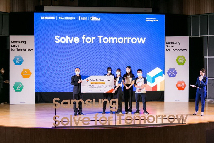 สำหรับในประเทศไทย Samsung Solve for Tomorrow เป็นโครงการที่ได้เชิญชวนเยาวชนที่กำลังศึกษาในระดับชั้นมัธยมปีที่ 4 – 5 และระดับประกาศนียบัตรวิชาชีพ ชั้นปีที่ 1 – 2 ร่วมประกวดออกแบบนวัตกรรม ภายใต้หัวข้อ “Innovation for Sustainable Communities, Good Health and Well-being” ในการนำเสนอโซลูชันเพื่อพัฒนาสังคมให้ดีขึ้นอย่างยั่งยืน ซึ่งในรอบแรกจะคัดเลือก 20 ทีม จาก 308 ทีม เพื่อเข้าร่วมเวิร์คชอปกับผู้เชี่ยวชาญ พร้อมรับเงินทุนสนับสนุน 5,000 บาท เพื่อเป็นทุนในการพัฒนาโครงการ หลังจากนั้นได้ประกาศผลให้เหลือเพียง 10 ทีม ซึ่งจะต้องโชว์ไอเดียที่ตอบโจทย์ Pain Point ของสังคมในแง่มุมที่หลากหลาย ไม่ว่าจะเป็นเรื่องนวัตกรรมเพื่อความปลอดภัย เพื่อป้องกันและดูแลสุขภาพ เพื่อลดปัญหาด้านสิ่งแวดล้อม และเพื่อยกระดับคุณภาพชีวิต หรือแม้กระทั่งเพื่อช่วยยกระดับการใช้ชีวิตวิถีใหม่จาก Work From Home เป็นต้น โดยมีคณะกรรมการ เป็นผู้คัดเลือกเพื่อผ่านเข้าสู่รอบชิงชนะเลิศ สำหรับ 3 ทีมที่ชนะ จะได้รับเงินสนับสนุนในการพัฒนาโซลูชันต้นแบบ (Prototype) รวมถึงเงินรางวัลและแท็บเล็ตซัมซุง มูลค่ารวมกว่า 900,000 บาท