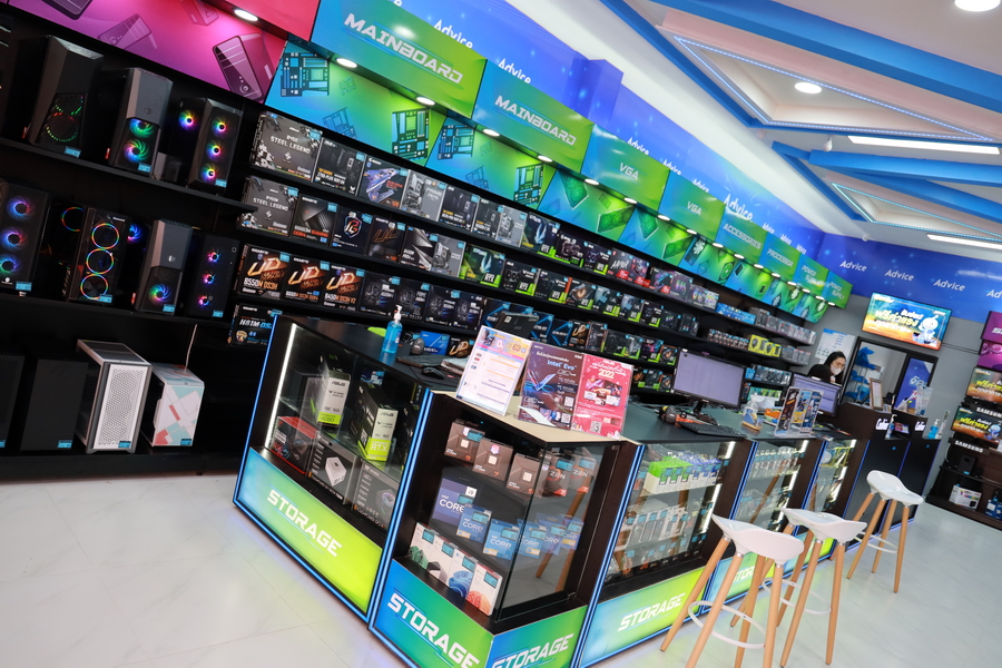 แอดไวซ์แฟลกชิปสโตร์ตั้งอยู่บนถนนศรีจันทร์ใจกลางเมืองขอนแก่น บนพื้นที่กว่า 488 ตารางเมตร จัดโซนให้ลูกค้าได้เลือกซื้อสินค้าเต็มพื้นที่ด้วยผลิตภัณฑ์ไอทีและเทคโนโลยีล่าสุดมากกว่า 10,000 รายการ พร้อมโซน Service ที่ให้บริการก่อนและหลังการขายแบบครบวงจรโดยทีมงานที่เชี่ยวชาญทั้งในด้านอัพเกรดฮาร์ดแวร์ ซอฟต์แวร์ ตรวจเช็คหรือส่งซ่อม อำนวยความสะดวกให้กับลูกค้าด้วยพื้นที่สำหรับนั่งทำงานระหว่างรอใช้บริการในโซน Work From Here รวมถึงลูกค้าที่ต้องการเปลี่ยนบรรยากาศการทำงานก็สามารถเข้าใช้บริการได้