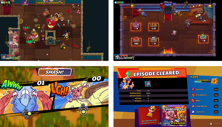 - Rogue-lite Shoot-em-up Showdown - มีศัตรูมากมาย อาวุธหลายสิบชนิด เพิร์คละไอเทมมากมาย ทั้งการสุ่มดร็อปและแผนที่แบบสุ่ม รวมถึงบอสที่กินเนื้อเป็นอาหารเพื่อให้คุณทดสอบความสามารถในการเอาชนะเกมด้วยไอเทมภายในเกมสุดเจ๋ง