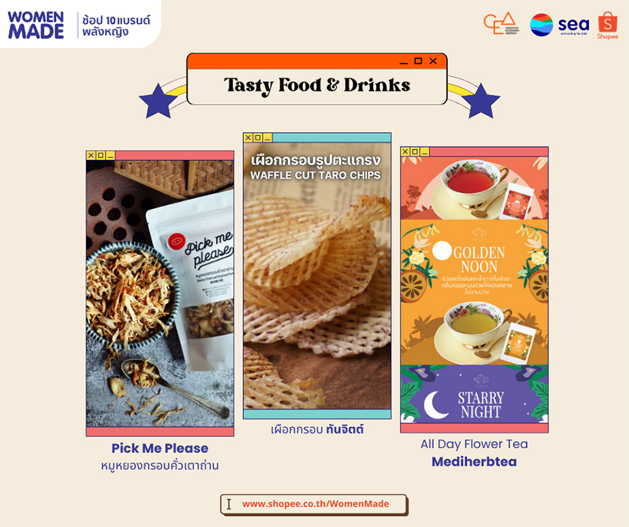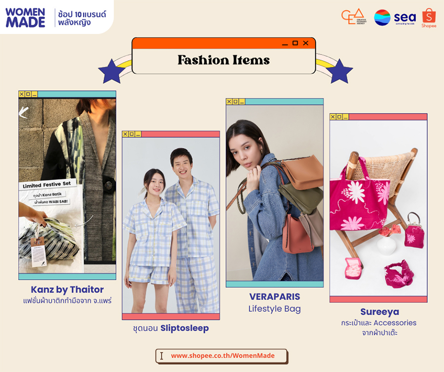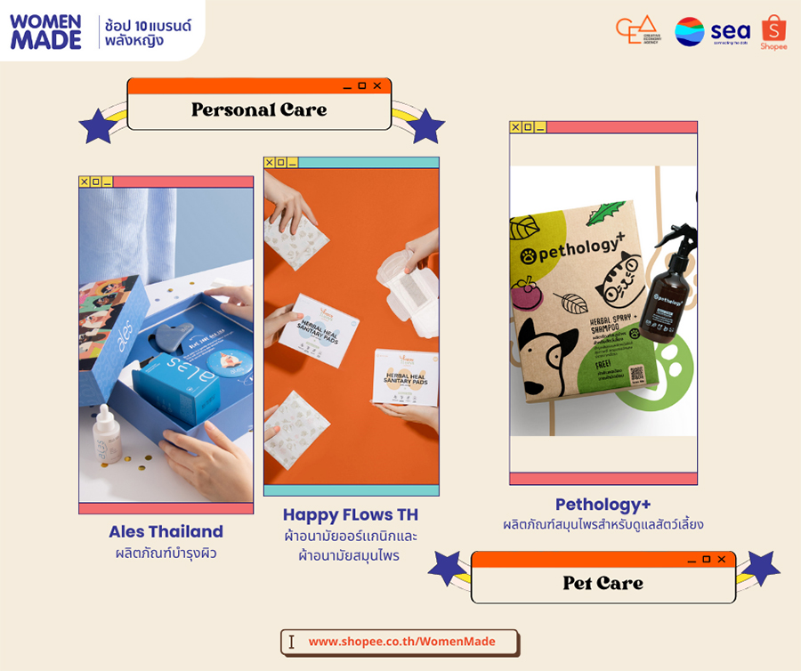 Sea (ประเทศไทย) และช้อปปี้ (Shopee) ซึ่งเป็นธุรกิจอีคอมเมิร์ซภายในเครือ ร่วมกับ สำนักงานส่งเสริมเศรษฐกิจสร้างสรรค์ (CEA) เปิดตัวแคมเปญ 'Women Made ช้อป 10 แบรนด์พลังหญิง' ชวนช้อปสินค้าคอลเลคชั่นพิเศษช่วงปีใหม่บนช้อปปี้ พร้อมมอบโปรโมชั่นส่วนลดสุดปัง 15% ตั้งแต่วันที่ 1 มกราคม - 15 กุมภาพันธ์ 2566 เติมความสุขช่วงปีใหม่ให้นักช้อป พร้อมสนับสนุนผู้ประกอบการหญิงชาวไทยให้เติบโตอย่างเต็มศักยภาพ