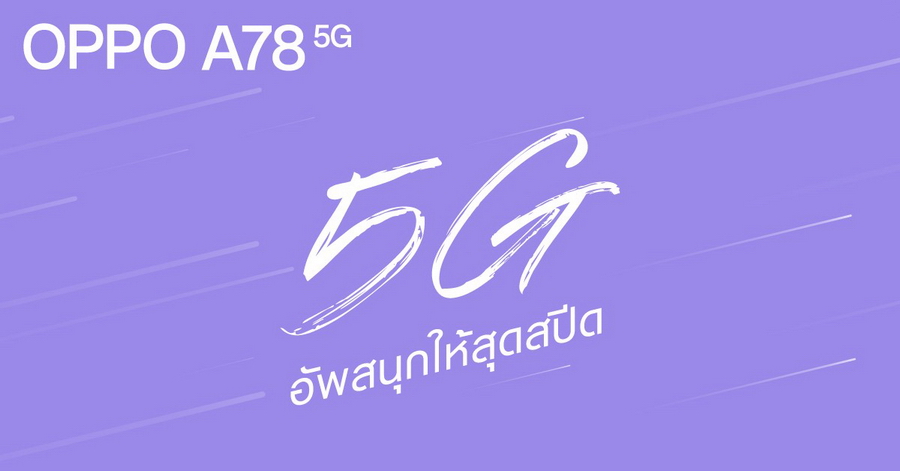 OPPO เตรียมเปิดตัวสมาร์ตโฟนรุ่นใหม่ล่าสุดจาก OPPO A Series พร้อมอัพสนุกให้สุดสปีดด้วย OPPO A78 5G สมาร์ตโฟน 5G ที่พร้อมเป็นคู่หูความสนุกให้คุณได้เต็มอิ่มไปกับทุกความบันเทิง ด้วยหน่วยความจำจัดเต็ม พร้อมชาร์จไว 33W SUPERVOOC และดีไซน์ขอบเหลี่ยมทันสมัย พร้อมด้วย OPPO Glow Design อัพสีสวยในสีม่วง Glowing Purple