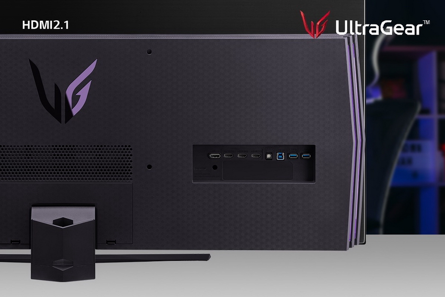 จอ LG UltraGear™ 48GQ900 ได้รับการออกแบบมาโดยคำนึงถึงประสบการณ์เล่นเกมที่สมบูรณ์แบบ ทั้งหน้าจอและขาตั้งที่บางเฉียบ ช่วยประหยัดพื้นที่ใช้สอยบนโต๊ะวางหน้าจอ เสริมอรรถรสความเร้าใจในการเล่นเกมด้วยไฟ RGB (Hexagon lighting) ที่ติดตั้งมาให้ที่ด้านข้างของจอ เปล่งแสงได้หลากสีตามเอฟเฟกต์ภาพที่ปรากฏบนหน้าจอ อีกทั้งให้สภาพแสงที่เหมาะสมไม่ว่าจะตั้งจอมอนิเตอร์ไว้ในห้องนั่งเล่น ห้องนอน หรือพื้นที่อื่น ๆ คอเกมยังเข้าถึงความมันส์ได้แบบเต็มพิกัดด้วยลำโพงสเตอริโอ 20W จำนวน 2 ตัวที่มอบเอฟเฟ็กต์เสียงได้อย่างคมชัด สมจริง ความพิเศษของจอเกมมิ่งมอนิเตอร์รุ่นใหม่นี้ยังมาพร้อมรีโมทคอนโทรลในดีไซน์ถูกใจเกมเมอร์ ช่วยให้ตั้งค่าเปิด ปิดภาพและเสียง รวมถึงเปลี่ยนโหมดเกมได้อย่างง่ายดาย พร้อมทั้งการเชื่อมต่อที่หลากหลาย ครอบคลุมทั้ง HDMI 2.1, DisplayPort 1.4, USB 3.0 ด้านบน 1 ช่องและด้านล่างอีก 2 ช่อง จอ LG UltraGear™ 48GQ900 จึงนับเป็นเกมมิ่งมอนิเตอร์ที่ออกแบบมาเพื่อคอเกมทั้งสายคอนโซลและพีซีอย่างแท้จริง
