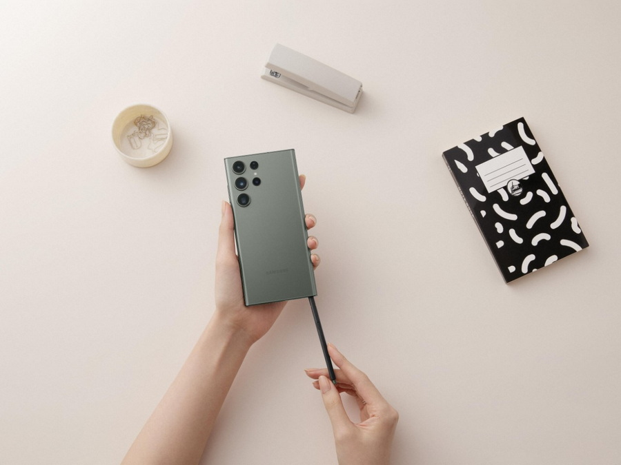 Galaxy S23 Ultra ยังมาพร้อมปากกา S Pen ที่ครองใจแฟนๆ สมาร์ทโฟนกาแล็คซี่มาอย่างยาวนาน ซึ่งช่วยเสริมสร้างประสิทธิภาพในการทำงานมากขึ้น ไม่ว่าจะเป็นการจดบันทึก การทำงานอดิเรก และ อีกมากมาย โดย Galaxy S23 series ได้มาพร้อมกับมาตรฐานใหม่ของสมาร์ทโฟนในด้านการส่งเสริมความยั่งยืน ภายใต้ดีไซน์ที่โดดเด่นด้วยวัสดุรีไซเคิลที่มากกว่าสมาร์ทโฟนซัมซุงกาแล็คซี่รุ่นอื่นๆ