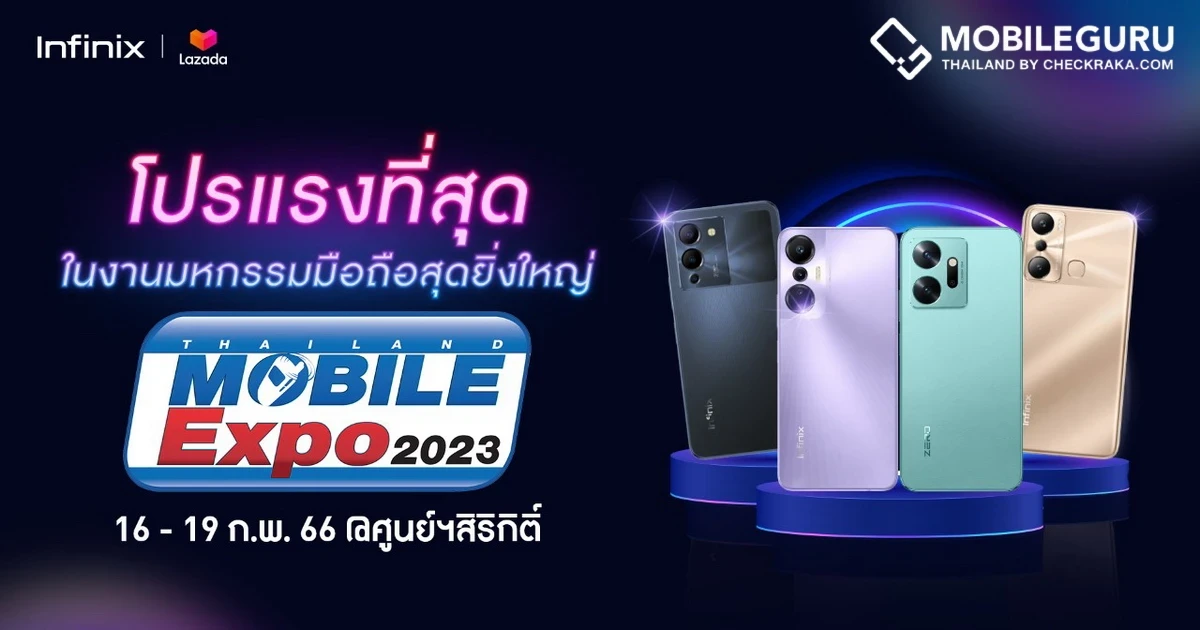 เตรียมพบกับกองทัพสมาร์ตโฟนจาก Infinix ในงาน Thailand Mobile Expo 2023 ได้ที่บูธ LAZADA ตั้งแต่เวลา 10.00 – 20.00 น. ระหว่างวันที่ 16 - 19 กุมภาพันธ์ 2566 ณ ศูนย์ประชุมแห่งชาติสิริกิติ์