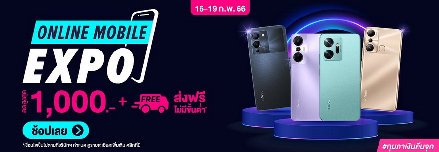 นอกจากนี้ หากใครไม่สะดวกเดินทางไปซื้อที่หน้างาน สามารถสั่งซื้อผ่านร้านค้าออนไลน์ Lazada Infinix LazMall ในระหว่างวันที่ 16 - 19 กุมภาพันธ์ 2566 โดยสินค้า Flash Sale ลดสูงสุด 1,000 บาท พร้อมส่งฟรี และมีข้อเสนอพิเศษ ผ่อน 0% นาน 3 เดือน ซึ่งสินค้าที่ร่วมรายการ อาทิ