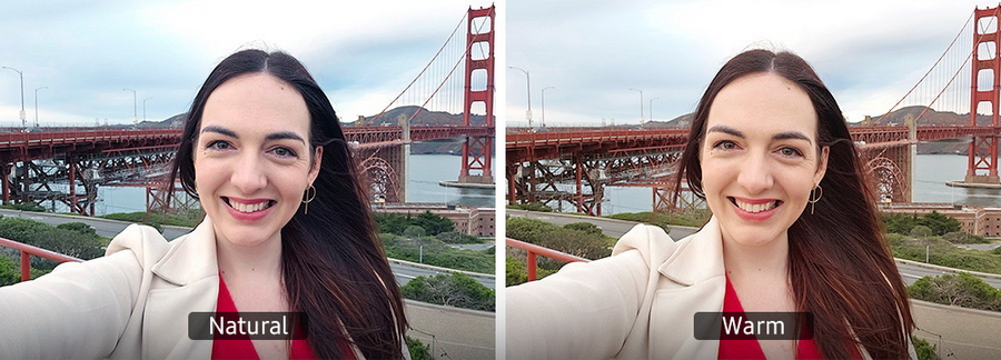 Galaxy S23 Ultra ช่วยปรับโทนสีภาพจากกล้องหน้าให้ภาพเซลฟี่ดูอุ่นขึ้นได้ ถือเป็นอัฟเดตการเซลฟี่จากสมาร์ทโฟนรุ่นก่อนหน้าที่มีเพียงโทนสีธรรมชาติ โดยสามารถเลือกใช้ตัวเลือกที่หลากหลายได้ในขณะถ่ายเซลฟี่ตามมู้ดของภาพและปรับ สกินโทนเพื่อให้ได้ภาพเซลฟี่ที่สวยงามในสไตล์ของตัวเอง