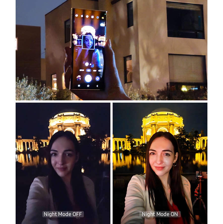 ฟีเจอร์การถ่ายภาพ Nightography ของ Galaxy S23 Ultra เป็นฟีเจอร์ที่ยกระดับประสบการณ์การถ่ายภาพโดยใช้ สมาร์ทโฟนไปอีกขั้น โดยสมาร์ทโฟนทุกรุ่นใน Galaxy S23 series สามารถลดนอยซ์ในภาพนิ่งและวิดีโอได้แม้ในสภาพแสงน้อยโดยใช้เทคโนโลยี Image signal processing - ISP ซึ่งมี AI solutions ที่ช่วยสร้างภาพนิ่งและวิดีโอที่คมชัด ด้วยข้อมูลที่บันทึกโดยใช้เซนเซอร์รับภาพเพื่อการปรับปรุงภาพถ่ายโดยเฉพาะด้านรายละเอียด สีสัน และคุณภาพของภาพ ก้าวข้ามขีดจำกัดทางกายภาพของกล้อง สามารถเห็นตัวอย่างได้จากภาพ The Palace of Fine Arts ที่ค่อนข้างมืดเนื่องจากไม่มีแสงไฟจากแหล่งอื่นนนอกจากแสงไฟจากตัวอาคาร