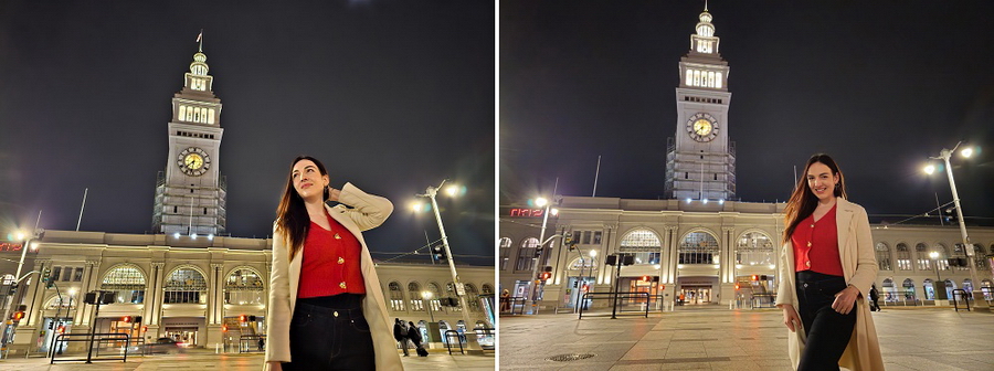 ฟีเจอร์ Nightography ทำงานได้ทั้งกับกล้องหลังและกล้องหน้า ช่วยให้ภาพเซลฟี่ที่โดยไม่มีแสงไฟถนนมีความสว่างและคมชัดแม้กระทั่งรายละเอียดของเส้นผม และได้ทดลองใช้ฟีเจอร์ Nightography ที่จตุรัสด้านหน้าอาคารท่าเรือเฟอร์รี่ ถึงแม้ว่าพื้นที่โดยรอบจะมีแสงสว่างมากกว่าสถานที่ก่อนหน้าแต่ก็ยังอยู่ในช่วงเวลากลางคืน ด้วยพลังของ Nightography ที่ช่วยให้ได้ภาพถ่ายสุดอลังการ โดยมีแสนไฟจากถนนและอาคารรอบๆ เป็นแบ็คกราวด์