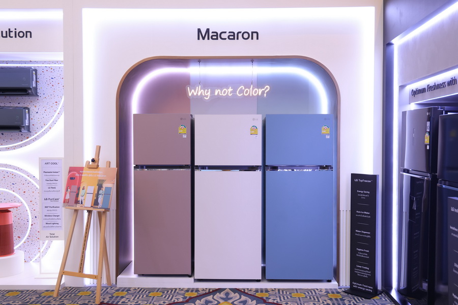 นอกจากนี้ แอลจียังเอาใจลูกค้าที่ชื่นชอบการตกแต่งบ้านด้วยโทนสีสันสดใส ด้วยการส่ง LG Macaron ตู้เย็น 2 ประตูรุ่นใหม่ มาใน 3 สี ได้แก่ สีฟ้าพาสเทล (Clay Mint) สีเบจ (Beige) และสีชมพูพาสเทล (Clay Pink) แต่ประสิทธิภาพการทำงานด้วยเทคโนโลยีที่ครบครัน ทั้ง Door Cooling+TM ที่มีจุดปล่อยลมเย็นบนบานประตูด้านบน ช่วยสร้างความเย็นได้อย่างรวดเร็วและทั่วถึง และ Linear CoolingTM ช่วยควบคุมความเย็นให้คงที่และสม่ำเสมอ ตู้เย็น LG Macaron รุ่นใหม่นี้จึงตอบโจทย์ผู้บริโภค Gen Z ได้เป็นอย่างดี ทั้งในแง่ประสิทธิภาพการใช้งาน และการเสริมสไตล์ตกแต่งบ้านอย่างลงตัว เพื่อมอบประสบการณ์อากาศเย็นสดชื่นและบริสุทธิ์ พร้อมความคุ้มค่าและประหยัดพลังงาน