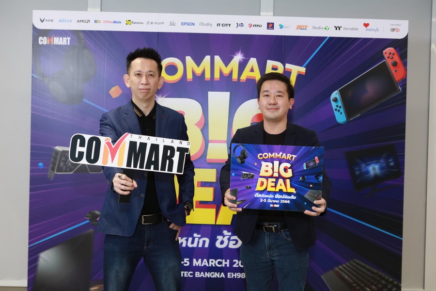 เออาร์ไอพีจับมือพันธมิตรแบรนด์สินค้าไอทีและผู้จัดจำหน่ายสินค้าอิเล็กทรอนิกส์และคอมพิวเตอร์ชั้นนำ แถลงความพร้อมจัดงานคอมมาร์ต พร้อมเปิดศักราชใหม่กับงานไอทีแรกของปี 2566 ภายใต้แนวคิด “COMMART BIG DEAL” พบดีลเด็ดโดนใจ สุดปัง จากทุกแบรนด์ ทุกค่าย และดีลพิเศษที่คอมมาร์ตจัดให้“ช่วยจ่ายคนละครึ่ง” กับวอยเชอร์ส่วนลดแทนเงินสดใช้ซื้อสินค้าได้ในงาน แถมช้อปครบทุก 3,000 บาท ยังได้รับสิทธิ์ลุ้นรางวัล Commart Big Bonus จับแจกทุกวัน ห้ามพลาดงานคอมมาร์ต รอบต้นปี 2-5 มีนาคม 2566 เวลา 10.00 - 21.00 น. ณ EH 98-99 ศูนย์นิทรรศการและการประชุมไบเทค บางนา