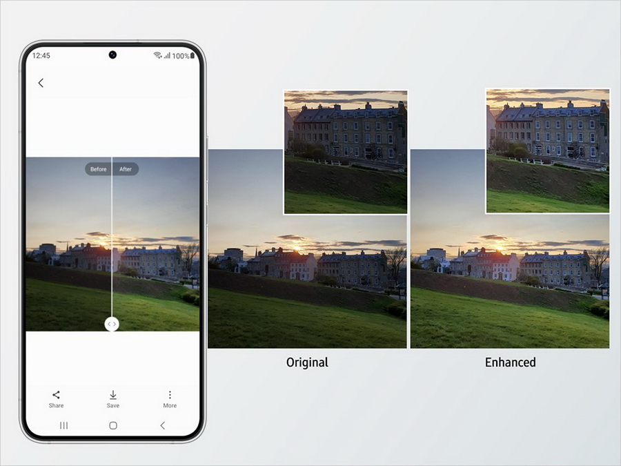 One UI 5.1 ต่อยอดการอัพเกรดฟีเจอร์กล้องถ่ายภาพที่ได้ประกาศไปแล้วพร้อมๆ กับ Galaxy S23 Series โดยในวันนี้ ผู้ใช้ซัมซุงกาแล็คซี่จะสามารถสร้างสรรค์ภาพถ่ายคุณภาพสูงระดับมืออาชีพได้อย่างยืดหยุ่นมากยิ่งขึ้นด้วยฟีเจอร์ Expert RAW ที่มีพร้อมให้ใช้งานได้ภายในแอป Galaxy Camera โดยตรง เพียงเลือกเมนู “More” ในขณะถ่ายภาพเพื่อเลือกเก็บภาพคุณภาพสูงในรูปแบบ RAW นอกเหนือจากนี้ ฟีเจอร์ Photo Remaster ที่ใช้เทคโนโลยี AI และได้รับการปรับปรุงสมรรถนะให้สูงยิ่งขึ้น ยังช่วยปรับปรุงรายละเอียดที่บกพร่องของภาพได้โดยอัตโนมัติโดยการปรับแก้ความสว่าง ปรับแต่งรายละเอียด พร้อมกับช่วยแก้ไขสีสันให้แม้ในภาพที่มีแสงน้อย และยังช่วยลบเงามืดและภาพสะท้อนที่ไม่พึงประสงค์เพื่อให้ได้ภาพถ่ายที่สวยสมบูรณ์แบบอีกด้วย