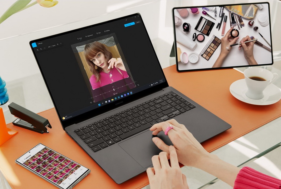 ผู้ใช้สามารถเพลิดเพลินไปกับอีโคซิสเต็มที่เชื่อมต่อกันได้อย่างทั่วถึงทั้งสมาร์ทโฟน แท็บเล็ตและคอมพิวเตอร์ส่วนตัวด้วยฟีเจอร์ Multi Control ระหว่าง Galaxy Book และสมาร์ทโฟน ทำให้ผู้ใช้สามารถแชร์การใช้งานเมาส์ แป้นพิมพ์ หรือแทร็คแพดของ Galaxy Book ได้ ไม่เพียงแค่กับแท็บเล็ตกาแล็คซี่เท่านั้น แต่ในวันนี้ยังทำเช่นเดียวกันได้กับสมาร์ทโฟน กาแล็คซี่อีกด้วย จึงสามารถคัดลอกและแปะข้อความตลอดจนลากรูปภาพจากเครื่องหนึ่งไปอีกหนึ่งได้อย่างไร้รอยต่อ เสมือนเป็นเครื่องเดียวกัน ยิ่งไปกว่านั้น ฟีเจอร์ Link to Windows ยังช่วยให้ผู้ใช้สามารถท่องอินเทอร์เน็ตด้วย Samsung Internet บนตัวเครื่องสมาร์ทโฟนเพื่อดูหน้าเว็บเดียวกันบนเครื่องคอมพิวเตอร์ส่วนตัว12 ได้อย่างไร้รอยต่อ หน้าเว็บเหล่านี้ยังสามารถเรียกดูต่อเนื่องจากเครื่องหนึ่งไปยังอีกเครื่องหนึ่งได้ ทำให้ชีวิตประจำวันกลายเป็นเรื่องที่ง่ายขึ้นมาก