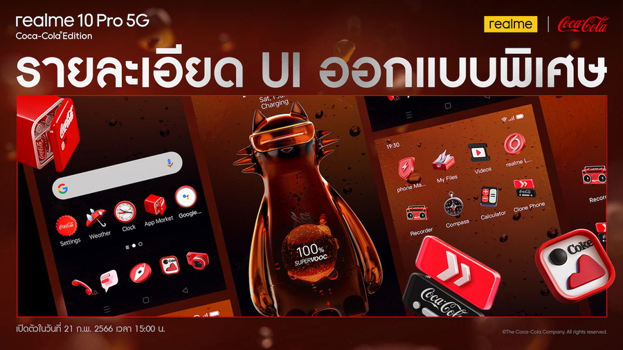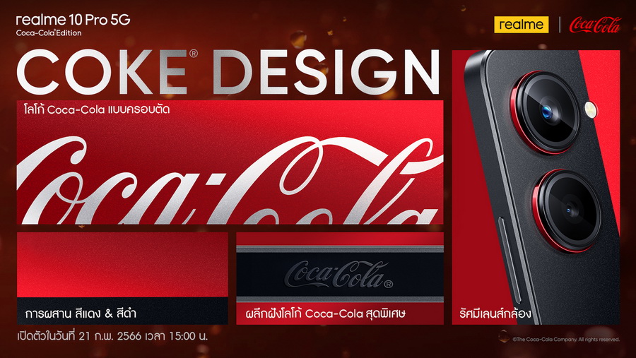 realme (เรียลมี) แบรนด์สมาร์ตโฟนเพื่อคนรุ่นใหม่ที่เติบโตเร็วที่สุดในโลก เปิดฉากปี 2566 ด้วยบิ๊กเซอร์ไพรส์กับการเปิดตัวสมาร์ตโฟนลิมิเต็ดอิดิชัน realme 10 Pro 5G Coca-Cola® Edition สร้างปรากฏการณ์เขย่าวงการสมาร์ตโฟนทั่วโลกด้วยผลงานคอลแลบระดับโลกครั้งแรกกับแบรนด์เครื่องดื่มยักษ์ใหญ่ Coca-Cola® สร้างสรรค์สุดยอดสมาร์ตโฟนในดีไซน์ธีม Coca-Cola สุดลิมิเต็ดที่แปลกใหม่ไม่ซ้ำใคร ตอกย้ำการเป็นแบรนด์สมาร์ตโฟนที่มุ่งมั่นสร้างสรรค์เทรนด์การออกแบบและเทคโนโลยีใหม่ ๆ อยู่เสมอเพื่อตอบโจทย์การใช้งานและไลฟ์สไตล์ของคนรุ่นใหม่ภายใต้แนวคิด “Dare to Leap” ล่าสุด “ค่ายเรียลมี” ได้เดินหน้าสานต่อกลยุทธ์ Co-branding ชวน Coca-Cola® แบรนด์น้ำอัดลมสุดไอคอนิก ร่วมครีเอตสมาร์ตโฟน Limited Edition ดีไซน์หนึ่งเดียวในโลกมาเอาใจคนรักความคลาสสิกระดับตำนานของแบรนด์โค้ก ที่ผสานเข้ากับตัวตนของแบรนด์เรียลมีได้อย่างงดงามลงตัว หลังจากที่ก่อนหน้านี้ ค่ายเรียลมี ประสบความสำเร็จจากการคอลแลบกับทั้งภาพยนตร์ อนิเมะ และวงการเกมมิ่งมาแล้ว