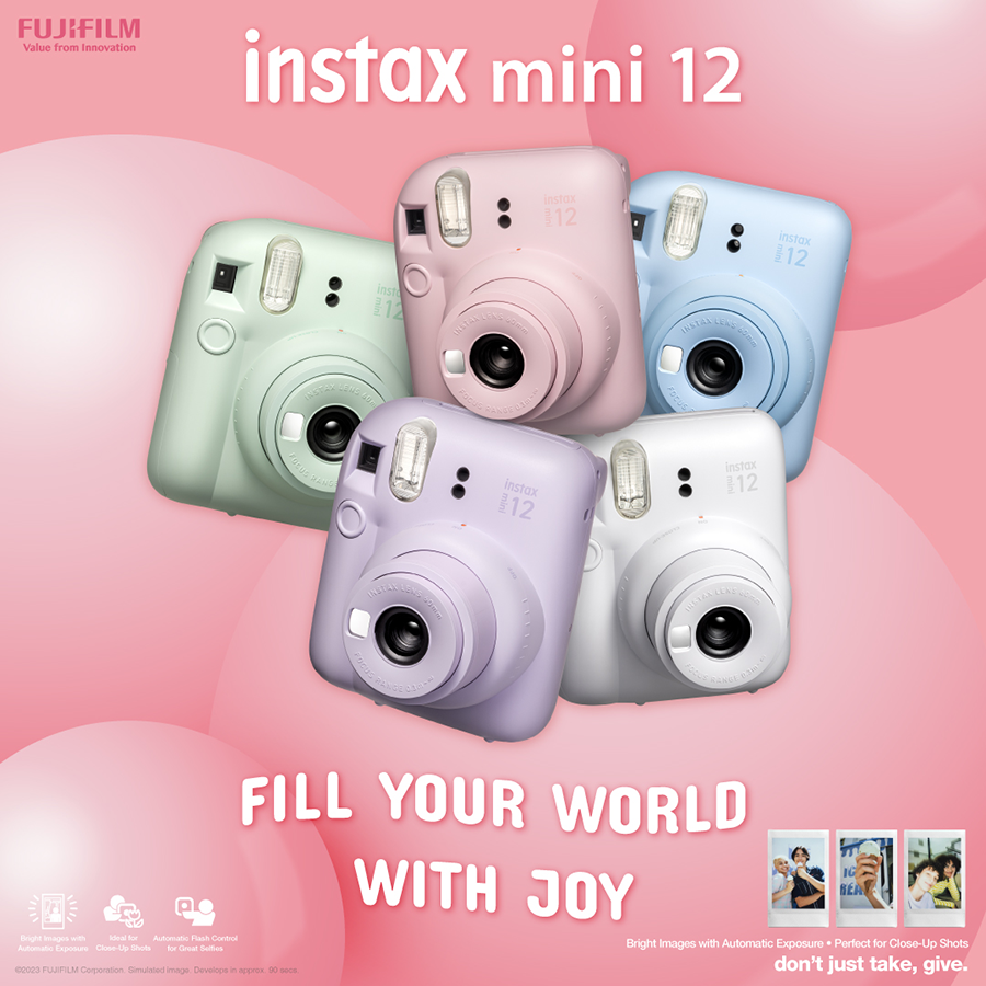บริษัท ฟูจิฟิล์ม (ประเทศไทย) จำกัด เปิดตัวกล้องฟิล์มอินสแตนท์รุ่นใหม่ล่าสุด "INSTAX mini 12" ภายใต้สโลแกน Fill your world with joy ชวนคนรุ่นใหม่ที่รักการถ่ายภาพมาร่วมแต่งแต้มความสุขให้ชีวิตด้วยกล้องฟิล์มอินสแตนท์ที่ใช้ง่ายที่มาพร้อมลูกเล่นสนุก ๆ พร้อมให้คุณแชร์ความทรงจำดี ๆ กับเพื่อน ๆ ได้ทันใจด้วยฟิล์มอินสแตนท์และช่องทางโซเชียลมีเดียผ่านแอป Instax Up! บนสมาร์ทโฟน