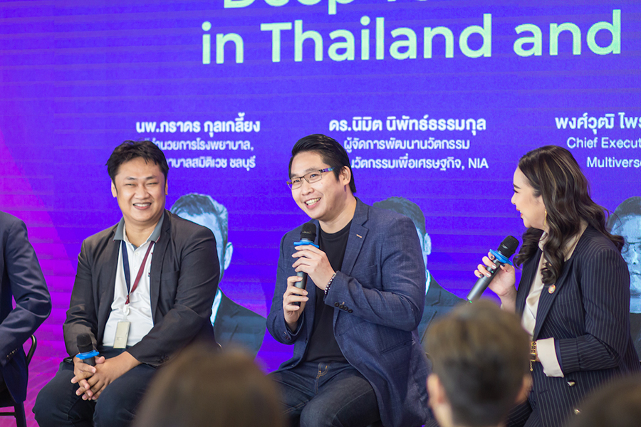 นอกจากนี้ภายในงานแถลงข่าวยังมีการพูดคุยแลกเปลี่ยนความคิดเห็นกับเหล่าผู้เชี่ยวชาญชั้นนำระดับประเทศอย่างเจาะลึกเกี่ยวกับประเด็นด้านเทคโนโลยีล้ำๆ ที่เกิดขึ้นในประเทศไทยและอนาคต ภายใต้หัวข้อ "Deep tech ecosystem in Thailand and beyond"