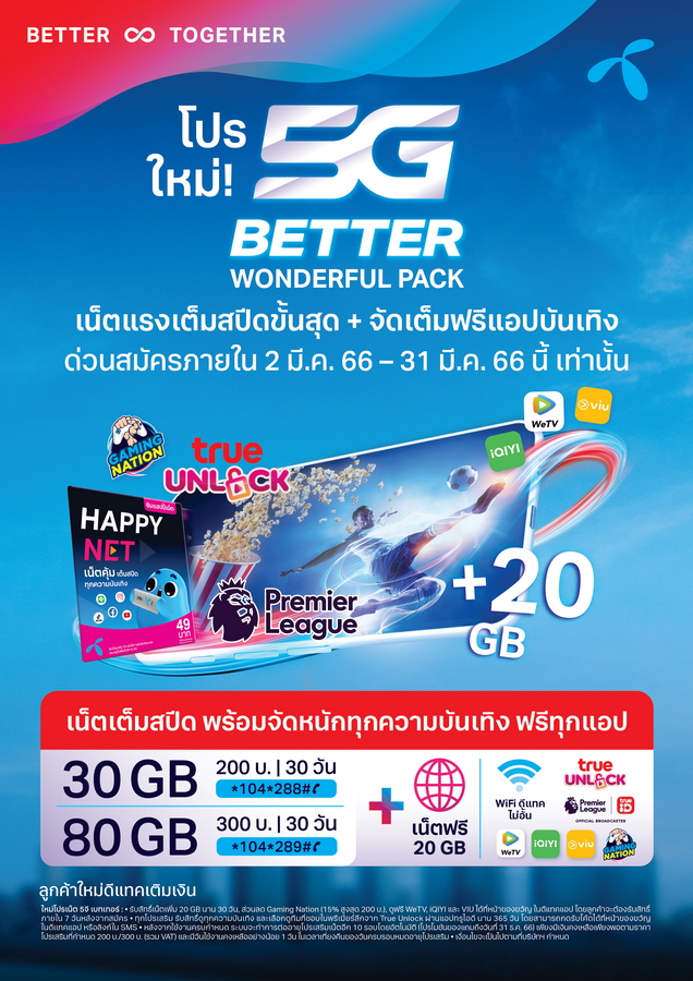 dtac แนะนำ แพ็กเกจใหม่ dtac 5G Better Wonderful Pack ผนึกกำลัง True จัดเต็มแพ็กเกจดีสุด คุ้มสุด ให้มากกว่า พิเศษเฉพาะลูกค้าใหม่ทั้งแบบเติมเงิน และรายเดือน สมัครได้ตั้งแต่วันนี้ ถึง 31 มี.ค 66 เท่านั้น