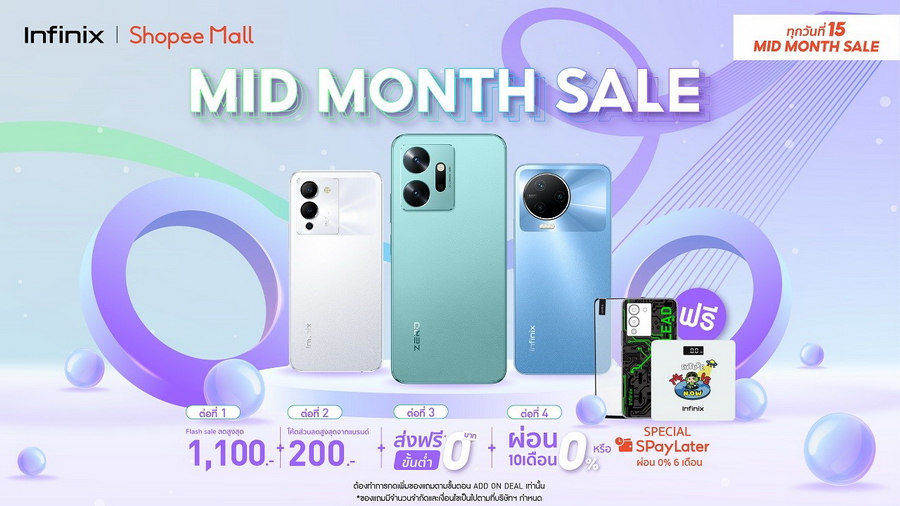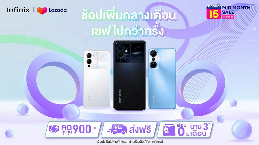 เมื่อเร็วๆ นี้ Infinix ได้จัดแคมเปญ 3.3 Mega Sale ร่วมกับสองแพลตฟอร์มชั้นนำอย่าง Shopee และ Lazada ซึ่งมีเสียงตอบรับจากผู้ใช้งานเป็นอย่างดี จึงทำให้ Infinix ต่อยอดความสำเร็จด้วยการจัดโปรโมชันกลางเดือนเพื่อเอาใจนักช้อปและผู้ที่พลาดในแคมเปญที่แล้ว โดยร้าน Shopee Infinix Thailand มอบ Flash Sale ลดสูงสุด 1,100* บาท และโค้ดส่วนลดจากแบรนด์ Infinix สูงสุด 200 บาท พร้อมบริการจัดส่งฟรี และข้อเสนอพิเศษ ผ่อน 0% นานสูงสุด 10 เดือน หรือผ่อนผ่าน Special SPayLater 0% นาน 6 เดือน สามารถซื้อสินค้าได้ที่ร้าน Infinix Official Store บน Shopee ในวันที่ 15 มีนาคม 2566 โดยมีสินค้าที่ร่วมรายการดังนี้