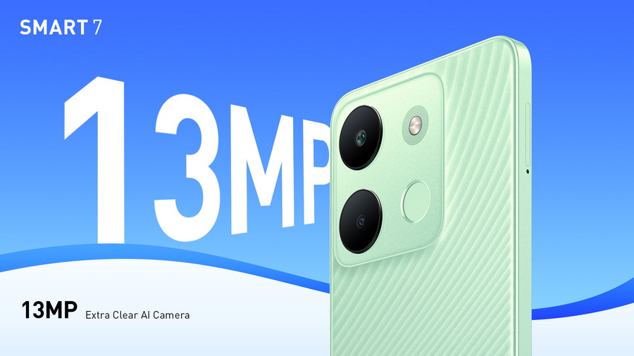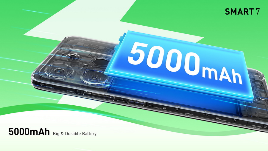 โดยรุ่นนี้ยังได้มอบประสบการณ์สำหรับการใช้งานกล้องบนมือถือด้วยกล้องหลักคุณภาพความละเอียดสูงสุด 13 ล้านพิกเซล พร้อมโหมดถ่ายภาพมากมายที่ทำให้ผู้ใช้งานถ่ายภาพในทุกช่วงเวลาดีๆ ได้อย่างลงตัว นอกจากนี้แบตเตอรี่ยังอึด ถึก ทน ขนาดความจุ 5,000 mAh สามารถสแตนบายการใช้งานได้ยาวนาน โดยไม่ต้องกังวลว่าแบตจะหมดระหว่างวัน ทำให้ไม่ว่าจะเป็นความบันเทิงหรือไลฟ์สไตล์รูปแบบไหน Infinix SMART 7 ก็สามารถตอบโจทย์ได้ทุกความต้องการได้อย่างแท้จริง