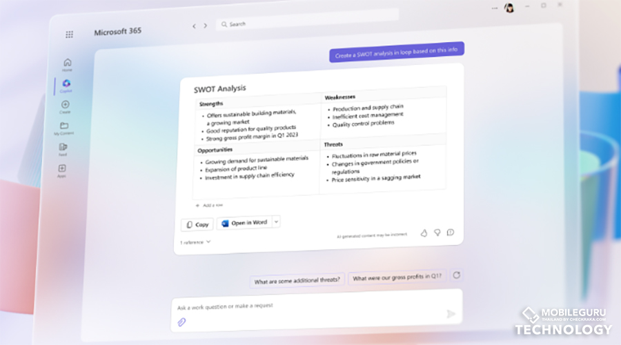 Microsoft ประกาศเปิดตัว "Copilot" เทคโนโลยี Generative AI บน Microsoft Office อย่างเป็นทางการ ยกระดับการใช้งานโปรแกรมเอกสาร Microsoft Office ไปอีกขั้น มุ่งเป้าหมายไปที่กลุ่มลูกค้าธุรกิจเป็นหลัก หลังเปิดทดสอบการใช้งานกับ 20 องค์กรที่ได้รับเลือก