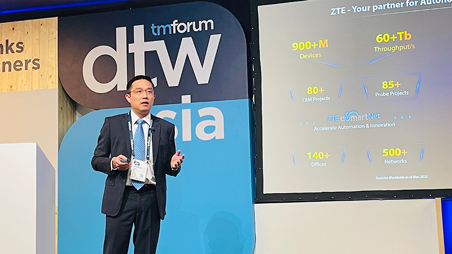 แซดทีอี คอร์ปอเรชั่น (ZTE Corporation) ผู้ให้บริการชั้นนำระดับโลกด้านโซลูชันเทคโนโลยีสารสนเทศและการสื่อสาร ได้มาร่วมแบ่งปันข้อมูลเชิงลึกเกี่ยวกับการเปลี่ยนผ่านสู่ดิจิทัลของอุตสาหกรรมโทรคมนาคม พร้อมกับสาธิตโซลูชันเครือข่ายอัตโนมัติยูสมาร์ทเน็ต (uSmartNet) ในสถานการณ์จริง เพื่อสนับสนุนผู้ให้บริการด้านการสื่อสาร (CSP) ในการสร้างเครือข่ายอัจฉริยะระดับ L3 ในงาน ทีเอ็ม ฟอรัม ดิจิทัล ทรานส์ฟอร์เมชัน เวิลด์ เอเชีย ประจำปี 2566 (TM Forum Digital Transformation World (DTW) Asia 2023) ณ กรุงเทพฯ ประเทศไทย ระหว่างวันที่ 14 - 16 มีนาคมที่ผ่านมา