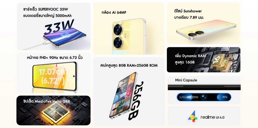realme C55 “A Champion of The Segment” อัปเกรด 4 ฟีเจอร์หลักรุ่นเดียวในเซกเมนต์ ทั้งกล้องถ่ายภาพ หน่วยความจำ ระบบชาร์จไฟ และดีไซน์ตัวเครื่อง