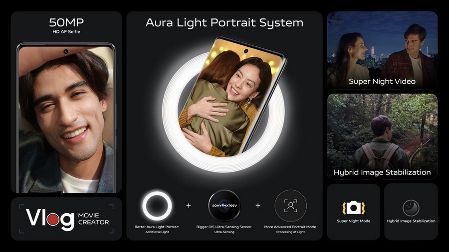 - สัมผัสประสบการณ์เซลฟี่ที่เหนือชั้นด้วยกล้องหน้า 50MP HD AF พร้อมฟีเจอร์ Aura Light Portrait ใหม่แกะกล่อง ตอกย้ำความเป็นผู้นำนวัตกรรมการถ่ายภาพบนสมาร์ตโฟนของ vivo