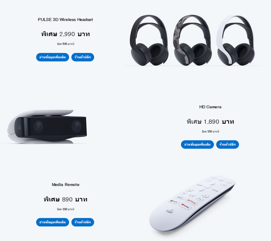 โปรโมชั่นต้อนรับเทศกาลสงกรานต์ (Songkran Deal) มาพร้อมผลิตภัณฑ์ในราคาสุดพิเศษ ประกอบด้วย หูฟังไร้สาย PULSE 3D Wireless ราคาพิเศษ 2,990 บาท, HD Camera ราคาพิเศษ 1,890 บาท และ Media Remote ราคาพิเศษ 890 บาท สามารถดูรายละเอียดเพิ่มเติมได้ที่ https://www.playstation.com/th-th/local/campaigns/songkran/