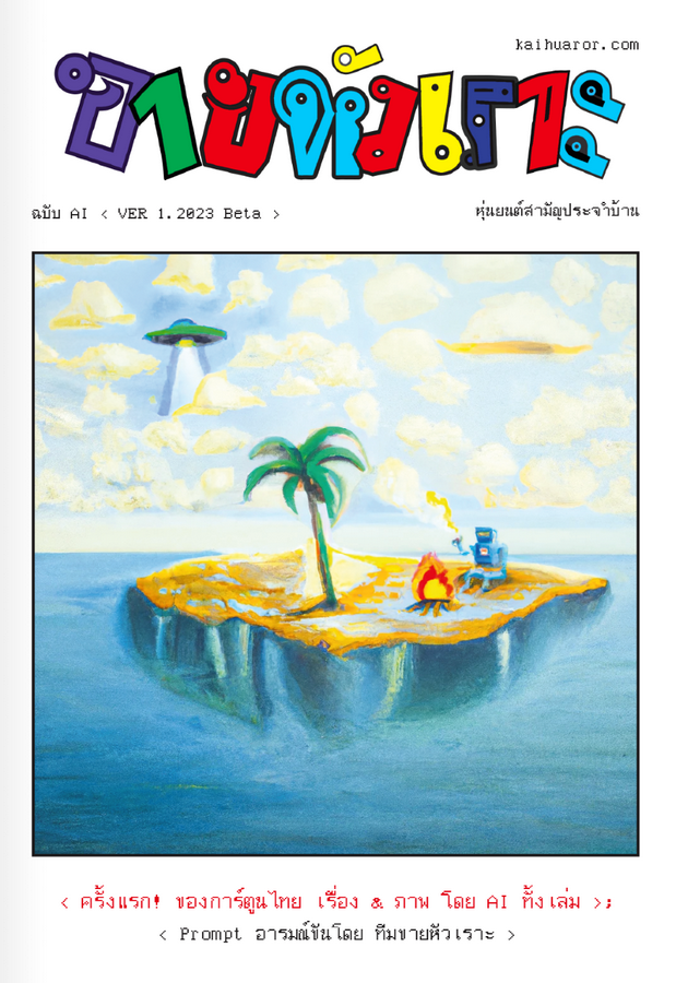 ‘ขายหัวเราะ’ แบรนด์การ์ตูนความฮาสามัญประจำบ้านของชาวไทย เปิดตัว ‘ขายหัวเราะ ฉบับ AI < VER 1.2023 Beta >’ การ์ตูนแก๊กเล่มแรกในวงการการ์ตูนไทยที่ใช้ปัญญาประดิษฐ์หรือ AI ในการสร้างสรรค์เรื่องและภาพทั้งเล่ม คิดมุก วาดแก๊กการ์ตูนเชิงอารมณ์ขัน รวมถึงตีความปกและ logo ขายหัวเราะใหม่ Prompt อารมณ์ขันโดยทีมขายหัวเราะ ชวนแฟนๆ การ์ตูนสำรวจอารมณ์ขันของ AI ยุคปัจจุบัน