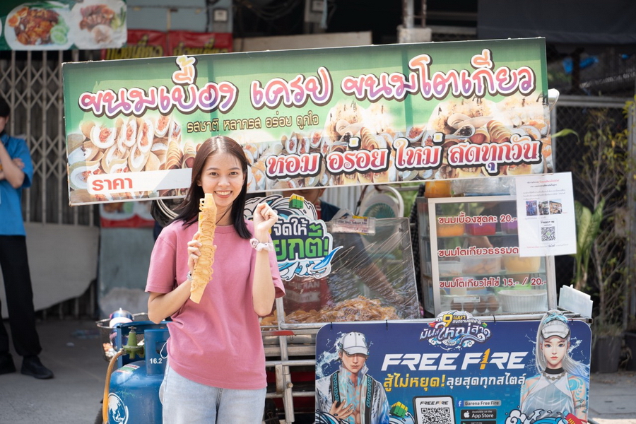 ไฮไลต์แรก Wrap รถเข็นขายอาหารเจ้าเด็ด ชวนคอเกมทั้งเก่าและใหม่เข้ามาเล่น Free Fire อาทิ รถ ขายลูกชิ้นปิ้ง ไส้กรอกทอด โตเกียว พร้อมจัดหนักด้วยสื่อสารแคมเปญ “ฟีฟายอัปให้ชิ้นใหญ่ แบบตัวตึง” อัปไซส์ ลูกชิ้นขนาดยักษ์ เท่ากำปั้น โตเกียวใหญ่เท่าแขน ไส้แน่น เต็มทุกคำ ขนมเบื้อง ใหญ่กว่าฝ่ามือ ไส้ทะลัก สอดคล้องกับไอเทมอัปไซส์และ ของรางวัลในเกมช่วงกิจกรรมสงกรานต์นี้