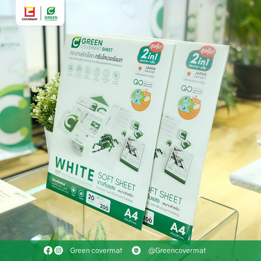 คุณสมบัติของผลิตภัณฑ์กระดาษรักษ์โลก กรีนโคเวอร์แมท สามารถกันน้ำได้ มีความแข็งแรง ทนต่อการฉีกขาด สามารถพิมพ์ได้ทั้ง 2 หน้า ่เหมาะกับงานพิมพ์เลเซอร์ สี-ขาวดำ การทำนามบัตร การ์ด ปกสมุด หนังสือ กระดาษปริ้นรูปถ่าย (Photo Print) และกระดาษสำหรับวาดภาพ เพนท์สี ฯลฯ ให้Finish ที่เป็น Semi-Matte กึ่งเงากึ่งด้านในตัวทันที หลังจากการprint จึงสามารถลดขั้นตอนการเคลือบเงาหลังการพิมพ์ในกระบวนการพิมพ์ปกติ สำหรับถุงแยกขยะรักษ์โลก กรีนโคเวอร์แมท มีคุณสมบัติที่แข็งแรง เหนียว ยืดหยุ่นได้ดี ไม่มีกลิ่น และนำมาใช้งานง่ายในการแยกขยะ เพราะมีจำนวน 4 สี ให้เลือกตามประเภทขยะ ได้แก่ สีเขียวสำหรับแยกขยะเปียก สีขาวสำหรับแยกขยะรีไซเคิล สีขาวขุ่น สำหรับแยกขยะกำพร้า และสีดำสำหรับแยกขยะทั่วไป อีกทั้งยังสามารถนำมารีไซเคิลได้ (Recycle)*