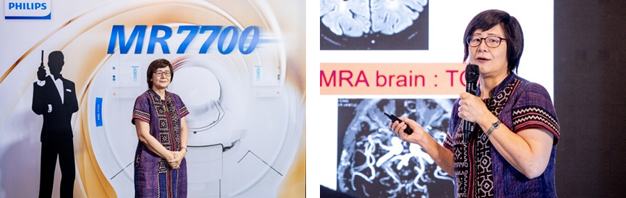 ทางด้าน ศาสตราจารย์ แพทย์หญิงอรสา ชวาลภาฤทธิ์ ภาควิชารังสีวิทยา คณะแพทยศาสตร์ ศิริราชพยาบาล มหาวิทยาลัยมหิดล มาร่วมแชร์ข้อมูลที่น่าสนใจว่า "ปัจจุบันผู้ป่วยกลุ่มโรคหลอดเลือดสมองทั้งในประเทศไทยและทั่วโลกมีจำนวนมากขึ้น โดยพบว่าประชากรในเอเชียมีความชุกของการเกิดโรคหลอดเลือดสมองสูงถึง 30-50% และโรคดังกล่าวเป็นสาเหตุหลักของการเสียชีวิตในกลุ่มโรคไม่ติดต่อเป็นอันดับสองของคนไทย จากสถิติในประเทศไทยพบอัตราตายที่ 53 ต่อประชากรแสนคน โดยโรคกลุ่มนี้หากตรวจพบเร็วแพทย์สามารถช่วยลดความรุนแรงของโรคลงได้ ซึ่งการตรวจวินิจฉัยอาการผู้ป่วยในกลุ่มนี้ทางการแพทย์เราจะใช้เครื่อง MRI เป็นเครื่องมือสำคัญในการตรวจหาความผิดปกติ เพราะสามารถถ่ายภาพอวัยวะในระดับเนื้อเยื่อได้อย่างชัดเจน และแพทย์สามารถตรวจพบความผิดปกติได้ตั้งแต่อาการระยะเริ่มแรก ในแง่ของการวินิจฉัยเครื่อง MRI จึงเหมาะกับการใช้ตรวจผู้ป่วยที่มีความผิดปกติของสมอง, หัวใจและหลอดเลือด มากกว่าเครื่อง CT Scan"