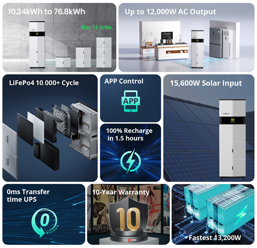 ระบบพลังงานภายในบ้าน PEX Series มีกำลังไฟฟ้าพลังงานแสงอาทิตย์ขาเข้า 15,600 วัตต์ และกำลังไฟฟ้าขาออกกระแสสลับสูงสุด 12,000 วัตต์ โดยสามารถจ่ายไฟให้กับทั้งครัวเรือนได้อย่างอิสระเพื่อรองรับการใช้งานในชีวิตประจำวันของทุกคนในครอบครัว เช่น การใช้แล็ปท็อป การใช้ตู้เย็นเพื่อรักษาความสดของอาหาร หรือการชาร์จรถยนต์ไฟฟ้าเทสลา เป็นต้น ขณะเดียวกัน ความจุของระบบพลังงานภายในบ้านสามารถขยายได้จาก 10.24 เป็น 76.8 กิโลวัตต์ชั่วโมง ทำให้สามารถสำรองไฟได้นานถึง 10 วันเลยทีเดียว