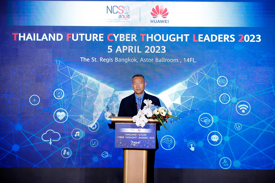 อีกทั้งรูปแบบการโจมตียังมีแนวโน้มที่จะพัฒนาตามเทคโนโลยีที่เปลี่ยนแปลงไป ซึ่งภัยคุกคามดังกล่าวอาจส่งผลต่อความมั่นคงของรัฐ ความสงบเรียบร้อยของสังคมและเศรษฐกิจของประเทศได้ในปัจจุบันและอนาคต สกมช. จึงได้ร่วมมือกับบริษัท หัวเว่ย เทคโนโลยี่ (ประเทศไทย) จํากัด จัดงานสัมมนา “Thailand Cyber Thought Leaders 2023” ครั้งนี้ขึ้น ซึ่งทางบริษัท หัวเว่ยฯ ที่มุ่งให้ความสำคัญความปลอดภัยทางไซเบอร์ ได้ร่วมทำงานกับทุกภาคส่วนเพื่อเพิ่มศักยภาพด้านดังกล่าวให้ดียิ่งขึ้น โดยปัจจุบันสกมช. ได้ร่วมกับหัวเว่ยเดินหน้าผลักดันหลากหลายโครงการ