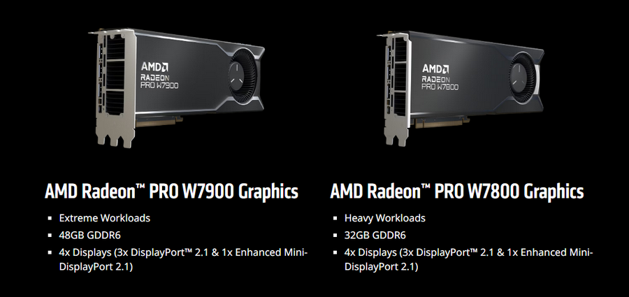 กราฟิกการ์ด AMD Radeon PRO W7000 Series เป็นกราฟิกการ์ดสำหรับระดับมื ออาชีพตัวแรกของโลกที่ใช้ฟี เจอร์เทคโนโลยีการออกแบบชิปเล็ ตขั้นสูงของ AMD และเป็นกราฟิกการ์ดตัวแรกที่ รองรับ DisplayPort 2.1 เพื่อประสบการณ์การรับชมที่ ยกระดับในจอแสดงผลยุคถัดไป เป็นกราฟิกการ์ดระดับมืออาชีพที่ ทรงพลังที่สุดเท่าที่ AMD เคยพัฒนามาจนถึงปัจจุบัน โดยกราฟิกการ์ด AMD Radeon PRO W7900 เสนอประสิทธิภาพการประมวผลบนฟั งก์ชั่น Geomean รวดเร็วขึ้นกว่ารุ่นก่อนหน้าถึง 1.5 เท่า นอกจากนี้กราฟิกการ์ดทั้งสองรุ่ นยังให้ประสิทธิภาพต่อราคาที่ดี กว่าเมื่อเทียบกับคู่แข่งที่มี ความต้องการใช้งานในด้านแอปพลิ เคชั่นระดับมือชีพและการสร้ างสรรค์ผลงาน โดยมีฟีเจอร์ที่สำคัญ ได้แก่