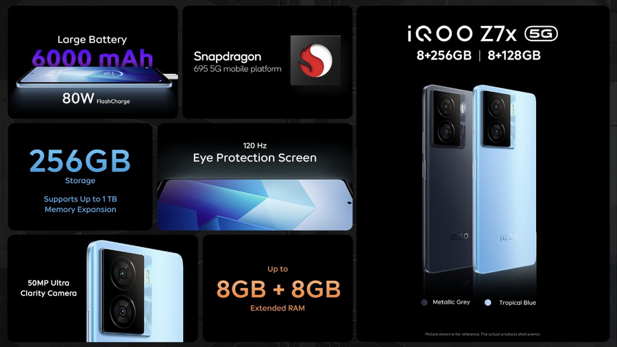 iQOO Z7x 5G กับ 2 สีใหม่ Metallic Grey และ Tropical Blue