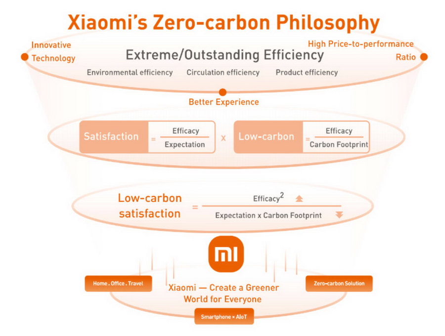 เป้าหมายของปรัชญาคาร์บอนเป็นศูนย์ของเสียวหมี่ คือการเพิ่มประสิทธิภาพของผลิตภัณฑ์ในราคาที่เป็นมิตรในขณะที่ลดการปล่อยก๊าซคาร์บอนไดออกไซด์ของผลิตภัณฑ์และบริการ เสียวหมี่จะยังคงเพิ่มการใช้เทคโนโลยีคาร์บอนต่ำเพื่อสร้างผลกระทบเชิงบวกต่อสภาพอากาศและส่งเสริมวิถีชีวิตที่เป็นมิตรต่อสิ่งแวดล้อมและสังคมคาร์บอนต่ำ (Low-carbon society)