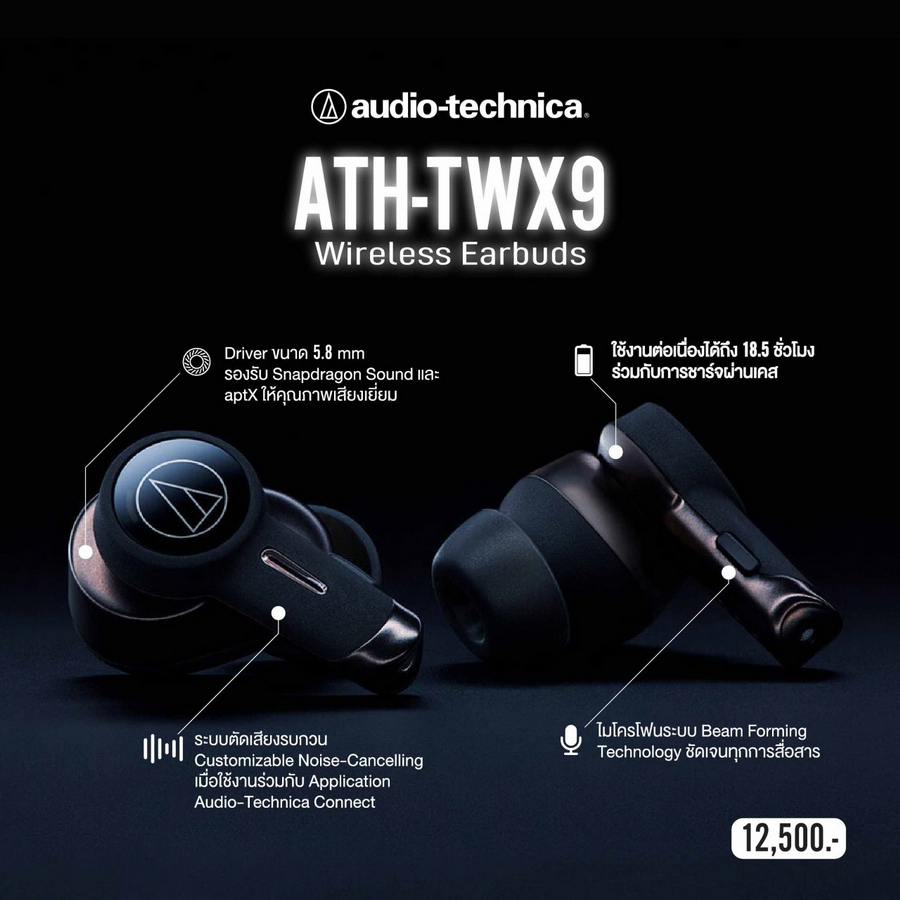 บริษัท อาร์ทีบี เทคโนโลยี จำกัด ผู้นำเข้าและจัดจำหน่ายสินค้า Gadget รายใหญ่ในประเทศไทย และเป็นตัวแทนจำหน่ายเครื่องเสียงภายใต้แบรนด์ Audio-Technica (ออดิโอ เทคนิก้า) แบรนด์หูฟังชั้นนำจากประเทศญี่ปุ่น เปิดตัวหูฟังไร้สาย Truly Wireless Earbuds รุ่นใหม่ล่าสุด ATH-TWX9 ที่ออกแบบมาสำหรับผู้ที่ชื่นชอบเสียงเพลงควบคู่ไปกับการทำงาน ช่วยให้คุณใช้งานได้อย่างไม่มีสะดุดด้วยเทคโนโลยีตัดเสียงรบกวนแบบดิจิทัลไฮบริดช่วยตัดเสียงรบกวนภายนอกได้อย่างมีประสิทธิภาพ มาพร้อมระบบ Hear-through ที่ช่วยให้คุณได้ยินเสียงรอบตัว โดยไม่ต้องถอดหูฟังให้เสียเวลา ทั้งยังรองรับการเชื่อมต่อผ่านบลูทูธได้ถึง 2 อุปกรณ์พร้อมกันด้วยเทคโนโลยี Multipoint Pairing พร้อมพลังเสียงคุณภาพจากไดร์เวอร์ความละเอียดสูงขนาด 5.8 มม. จะช่วยขยายความกว้างของช่วงเสียงและปรับปรุงรายละเอียดของเสียงให้ดียิ่งขึ้น รวมถึงรองรับระบบเสียง Qualcomm® Snapdragon Sound™, Qualcomm® aptX™ Adaptive audio และ Sony 360 Reality Audio เพื่อประสบการณ์การฟังขั้นสูงสุด