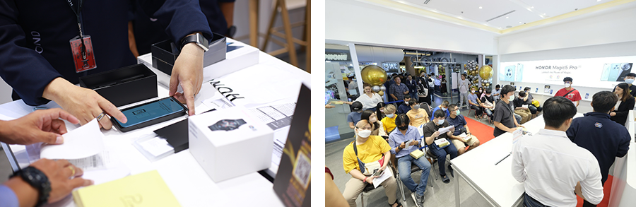 ภายใน HONOR Experience Store แห่งแรกในประเทศไทย ได้ออกแบบตกแต่งโดยสื่อสารถึงความเป็นแบรนด์นวัตกรรม ที่อัดแน่นไปด้วยเทคโนโลยีล้ำสมัย ตอบโจทย์การใช้งานของผู้บริโภคที่ครอบคลุมทุกด้าน นอกจากนี้ เพื่ออัปเกรดการสัมผัสประสบการณ์แบบไร้ขีดจำกัด HONOR Experience Store ยังมีพื้นที่หลากหลายโซนกิจกรรมให้แฟนๆ ได้สัมผัสและทดลองสินค้าได้อย่างทั่วถึง