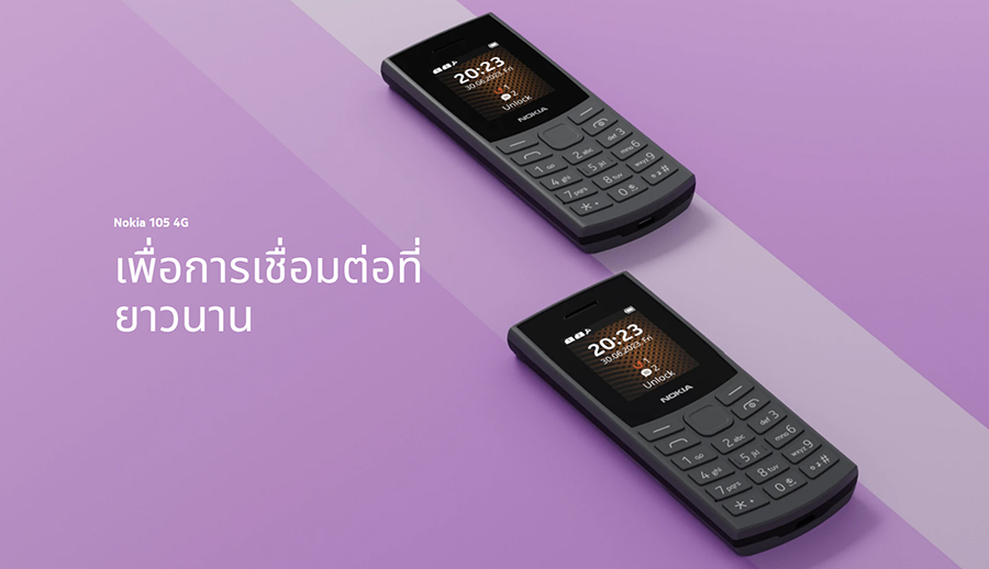 เอชเอ็มดี โกลบอล ประเทศไทย พร้อมจำหน่าย Nokia 110 4G (2023) และ Nokia 105 4G (2023) อัพเกรดสเปคใหม่ ดีครบเครื่อง สวย คงทนเหมือนเดิม รองรับเครือข่าย 4G ใช้งานสองซิม บันทึกการโทรอัตโนมัติ ดีไซน์ตัวเครื่องเน้นความคลาสสิกแต่ร่วมสมัย โค้งมน พื้นผิวนาโน เฉดสีทันสมัย หน้าจอขนาด 1.8 นิ้ว พร้อมโหมดซูมขยายเอาใจผู้สูงวัย ปุ่มกดขนาดใหญ่ใช้งานง่ายมากขึ้น อัพเกรดลำโพงให้ดังขึ้น เพิ่มความจำสูงสุดถึง 32 GB บันทึก MP3 ได้กว่า 1,000 เพลง มีวิทยุ FM พร้อมเกมงูสุดคลาสสิก แบตเตอรี่ขนาดใหญ่ขึ้น 1450 mAh ใช้งานได้ยาวนาน เน้นกลุ่มวัยทำงานที่ต้องการเครื่องสำรอง ผู้สูงอายุ และกลุ่มองค์กร พบฟีเจอร์โฟนยังมีดีมานด์ ผู้บริโภคเริ่มมองหาฟีเจอร์โฟน เพื่อออกห่างจากโซเซียลและสมาร์ทโฟน