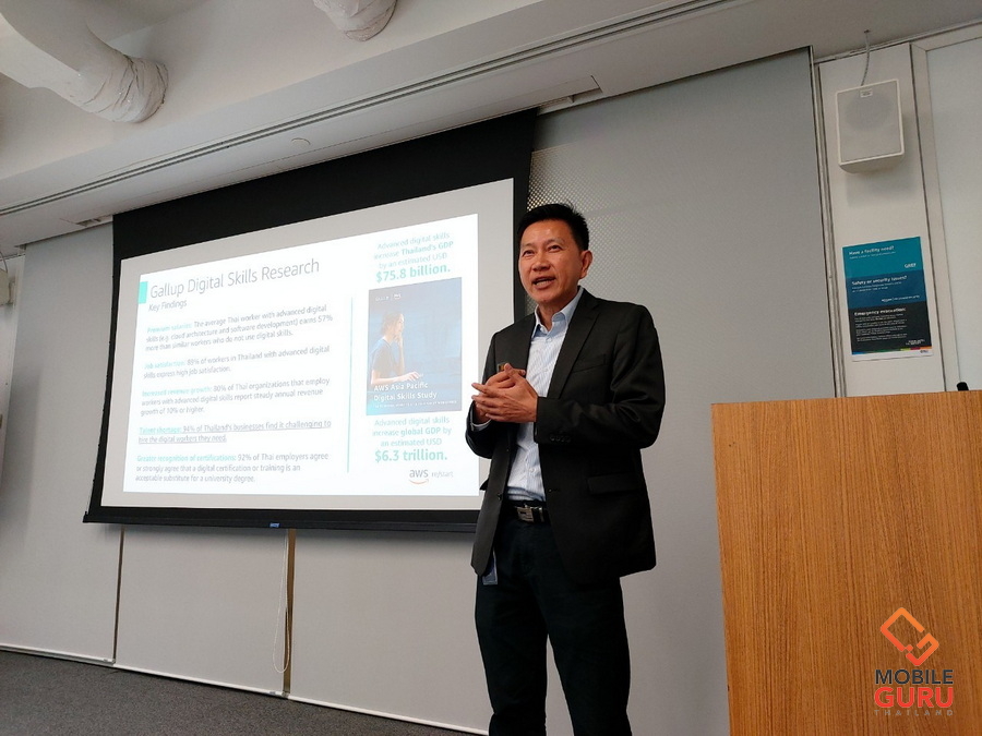 การวิจัยของ Gallup ซึ่งดำเนินการโดย AWS แสดงให้เห็นว่า 94% ของพนักงานที่ไม่ได้ทำงานด้านเทคโนโลยีในประเทศไทย มีความสนใจอย่างมากหรือมากที่สุดในการรับการฝึกอบรมในทักษะดิจิทัลอย่างน้อยหนึ่งทักษะ เช่น ความปลอดภัยในโลกไซเบอร์ (cybersecurity) ปัญญาประดิษฐ์ (artificial intelligence) และวิทยาการหุ่นยนต์ (robotics) อย่างไรก็ตาม 53% ของพนักงานที่ไม่ได้ทำงานด้านเทคโนโลยีกล่าวถึงอุปสรรคที่เกี่ยวข้องกับการไม่มี เพื่อแก้ไขอุปสรรคนี้ AWS re/Start ให้การฝึกอบรมโดยไม่มีค่าใช้จ่าย ทั้งแบบเข้าห้องเรียนหรือแบบออนไลน์เป็นระยะเวลา 12 สัปดาห์ และสนับสนุนผู้เรียนในช่วงเริ่มต้นอาชีพใหม่ด้านคลาวด์