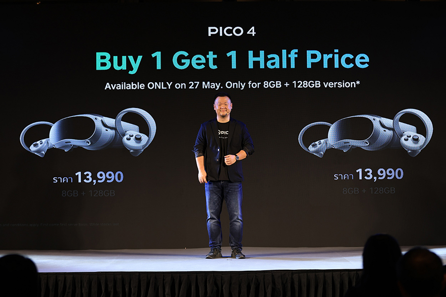 ส่วนลูกค้าที่ตัดสินใจซื้อ PICO 4 รุ่น 128GB ภายในวันที่ 27 พฤษภาคม จะได้รับข้อเสนอที่พิเศษยิ่งกว่า กับสิทธิในการแลกซื้อ PICO 4 รุ่น 128GB อีกหนึ่งชุดที่ครึ่งราคา หรือ 6,995 บาทเท่านั้น